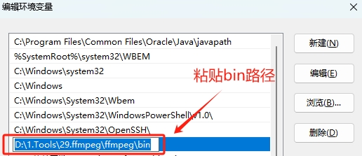 在系统变量(S)中找到Path,点击编辑(I)…,点击新建,粘贴你的bin目录路径:
