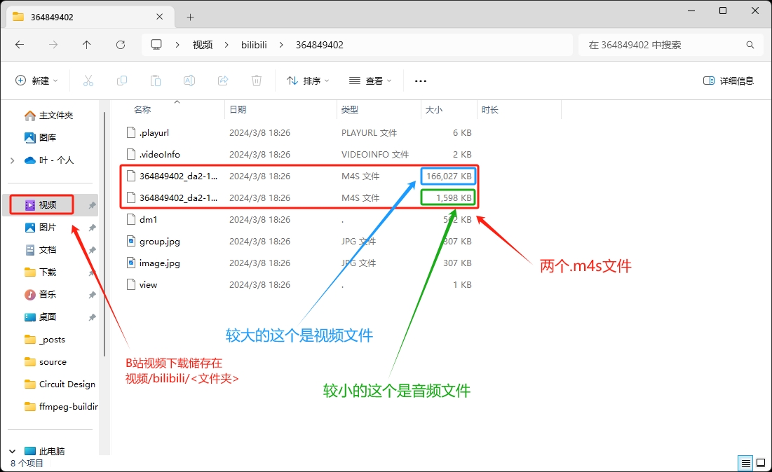 首先,我们要找到B站视频缓存的文件夹位置,找到两个.m4s文件,将其拷贝到另一空文件夹: