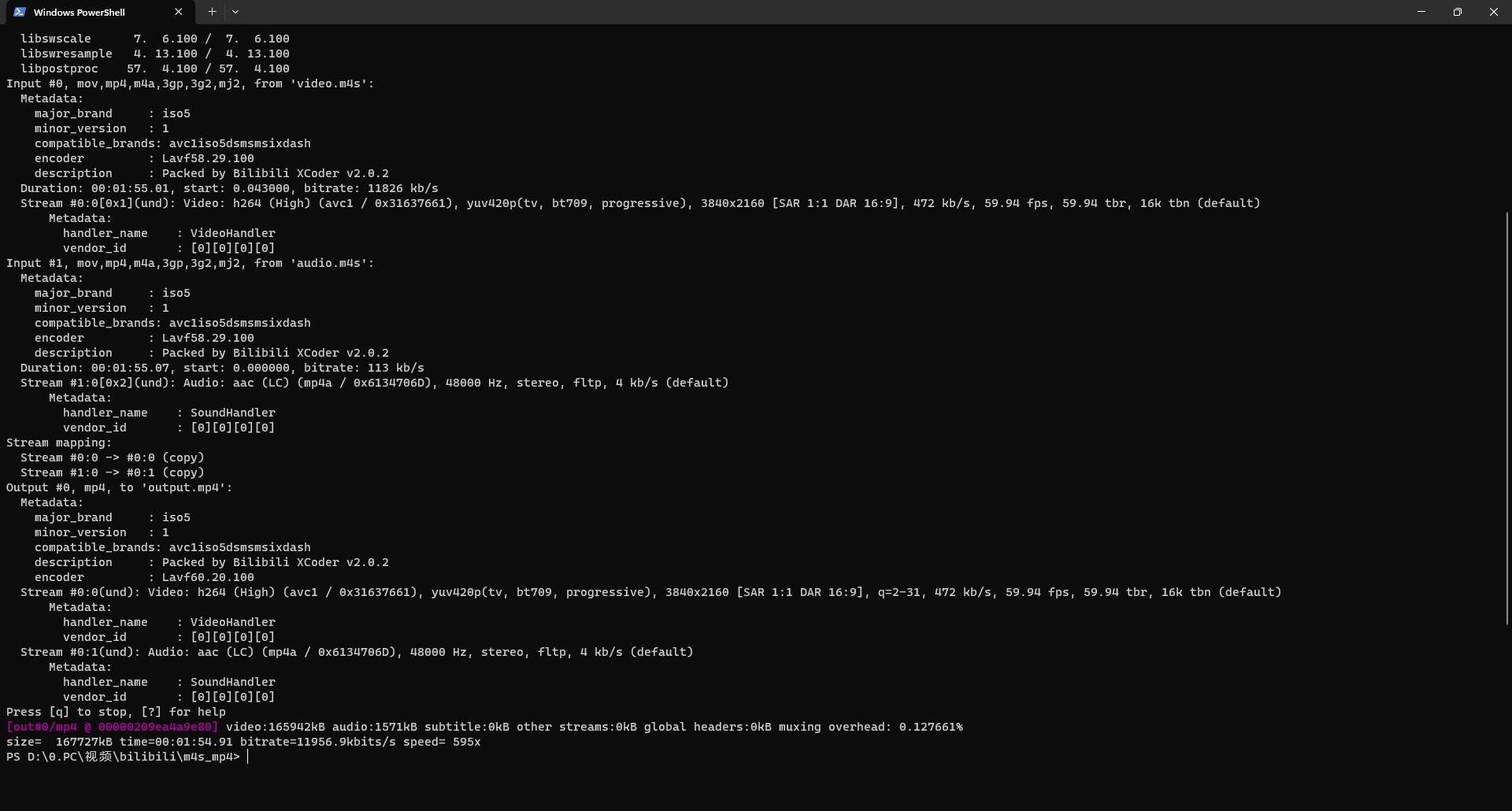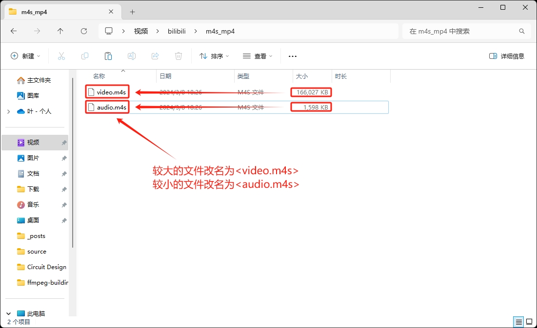 将两个文件重命名为video.m4s和audio.m4s: