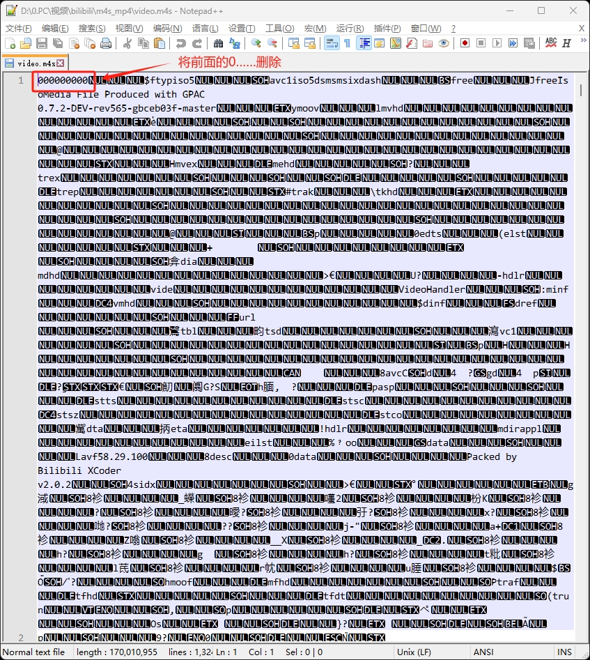 将两个文件都 右键选择用notepad++打开,删除最前面的00……0,保存:
